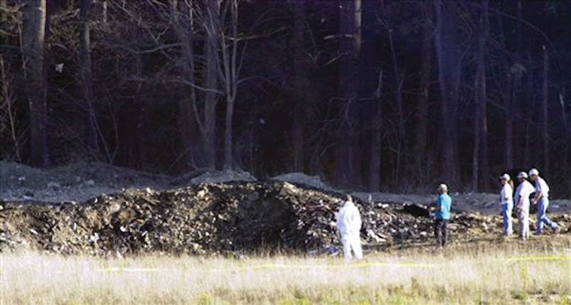 Det fjerde fly skulle være styrtet ned på denne mark i Shanksville. Kan du se vragdele fra flyet, fx vingerne, sæder, hjul, flymotorerne, halepartiet eller bagage?